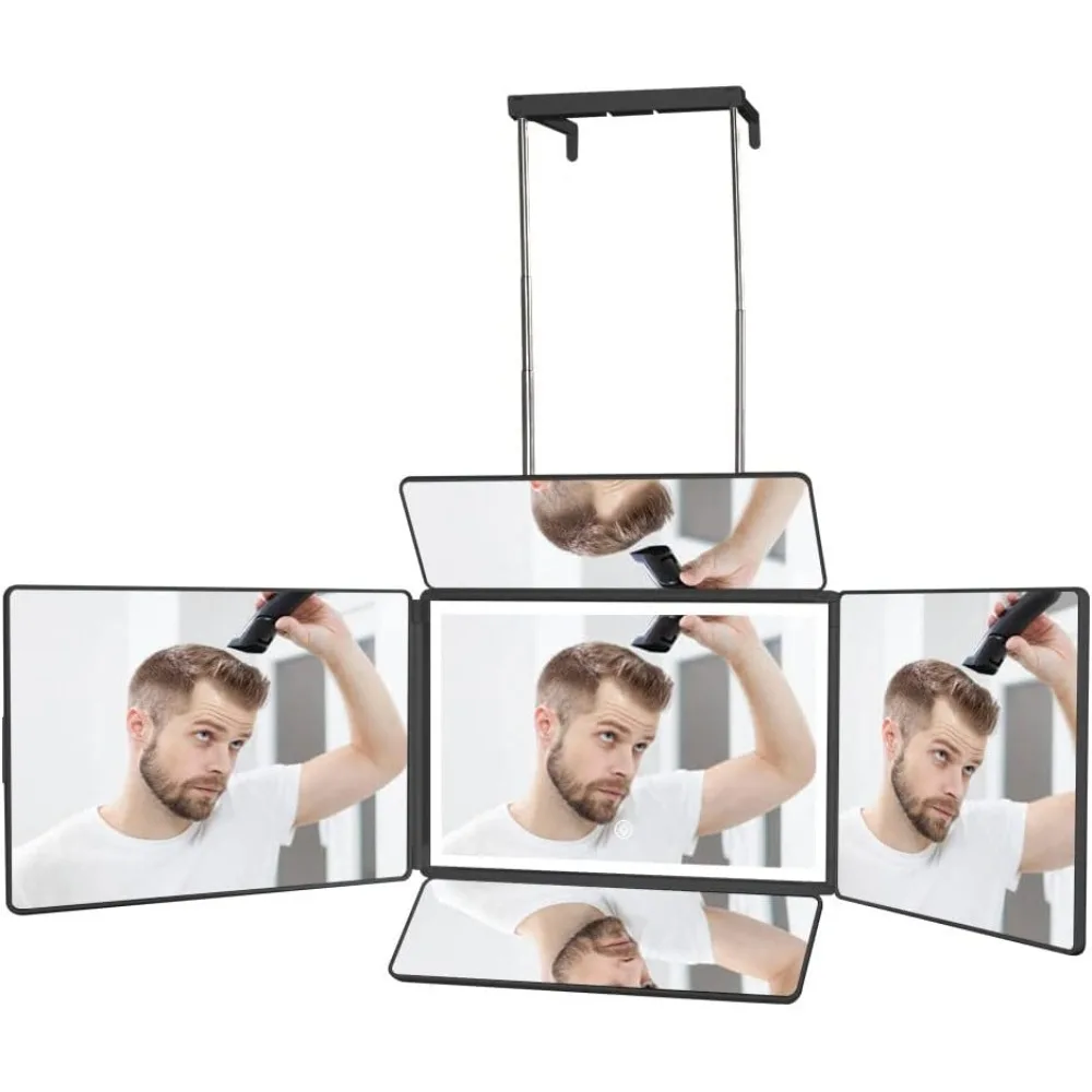 360 ° - Miroir auto-coupé - Miroir 5 faces pliable avec crochets adaptables, lumières LED rechargeables, Voir l'arrière de la tê