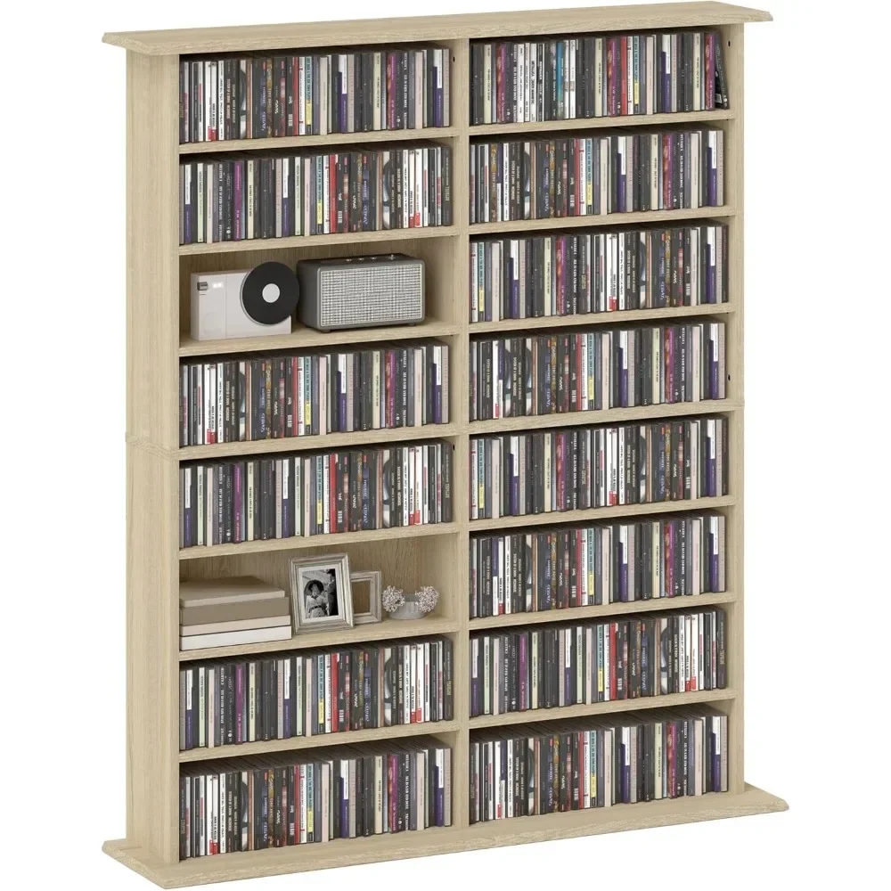 Meuble de rangement multimédia pour CD et DVD, avec 16 compartiments et 12 étagères réglables, max. 720 CD/396 DVD's et Blu-Ray, 106,5 x 24 x