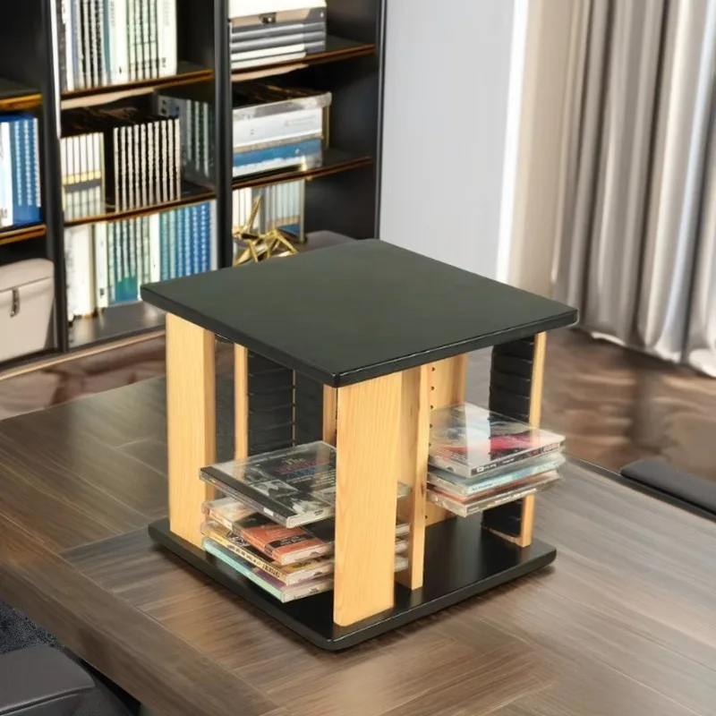 Support de CD de bureau monocouche en bambou, support de stockage de disque rotatif avec boîte de rangement de collecte