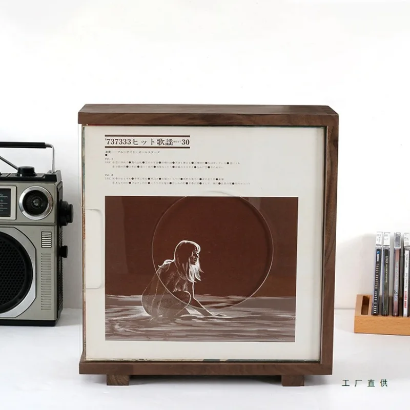 Support de stockage de disques vinyles en noyer noir, boîte de rangement de disques vinyles de 12 pouces, support de CD en acrylique nostalgique en bois massif