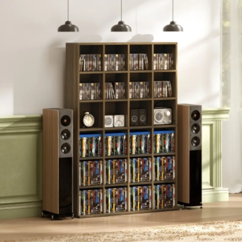 Rangements pour CD et DVD, étagère de rangement pour 456 CD/336 DVD, 24 compartiments et étagères réglables, marron