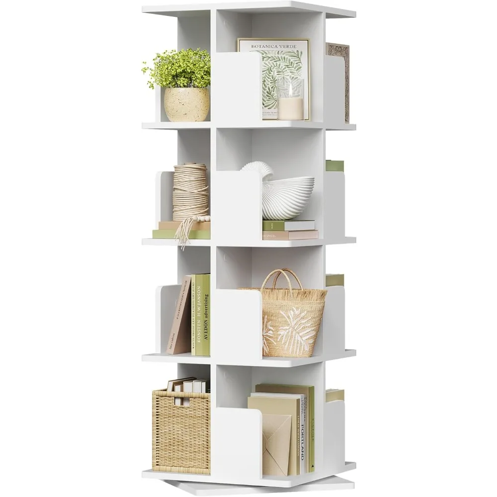 Bibliothèque rotative à 4 niveaux en MDF, étagère de Sol étagère Colonne Meuble de Rangement pour Salon, Bureau 40x40x129