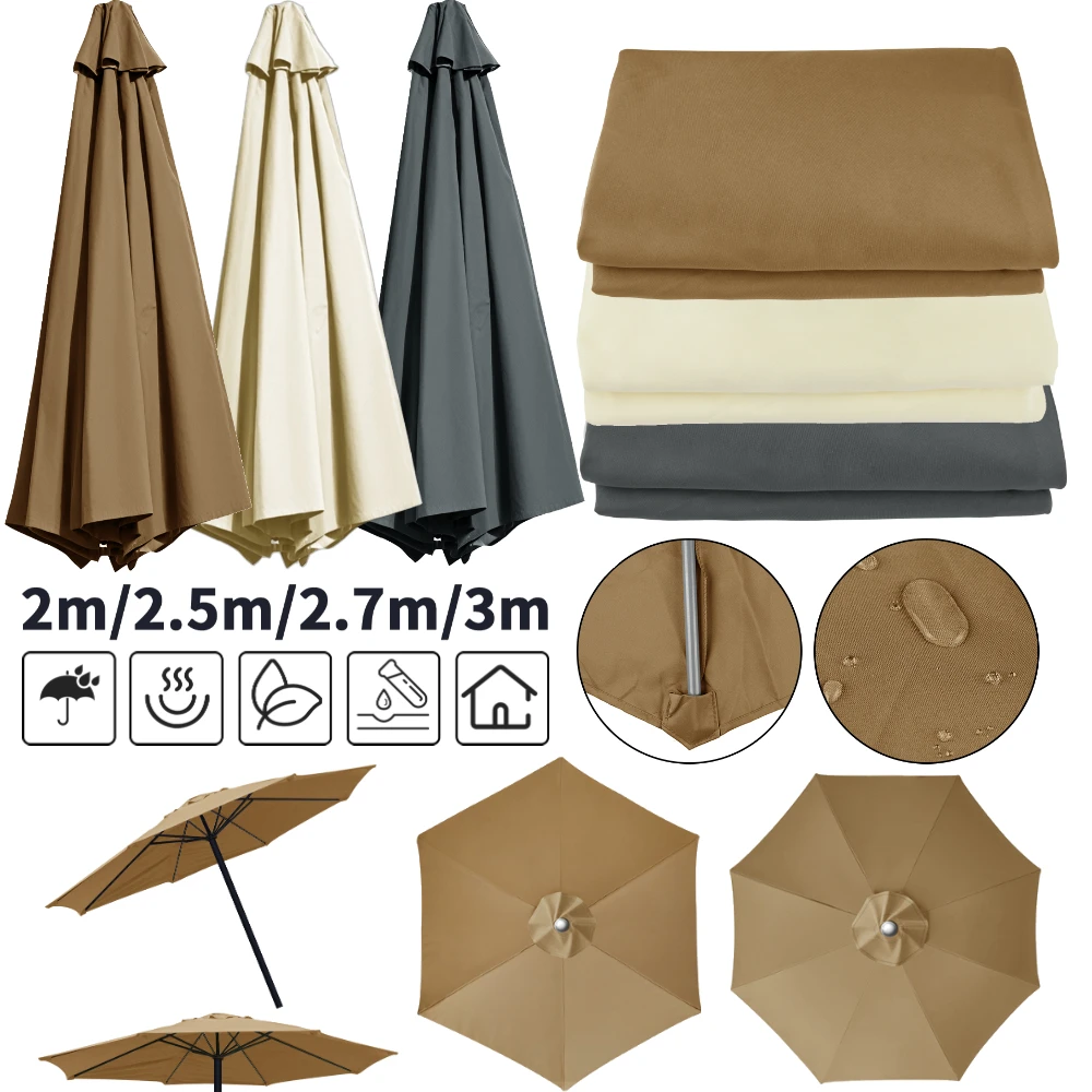 Tissu de rechange imperméable pour parasol 2/3M, housse de parasol de patio, protection UV, housse de rechange pour parasol de balcon et de jardin
