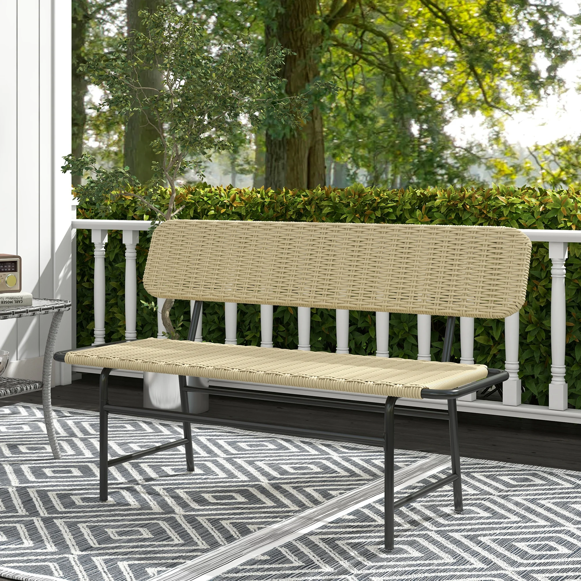 Banc de chaise en polyrattan, banc de jardin 2 places en osier sans accoudoir, jusqu'à 250 kg, structure en métal, banc de balcon élégant en kaki