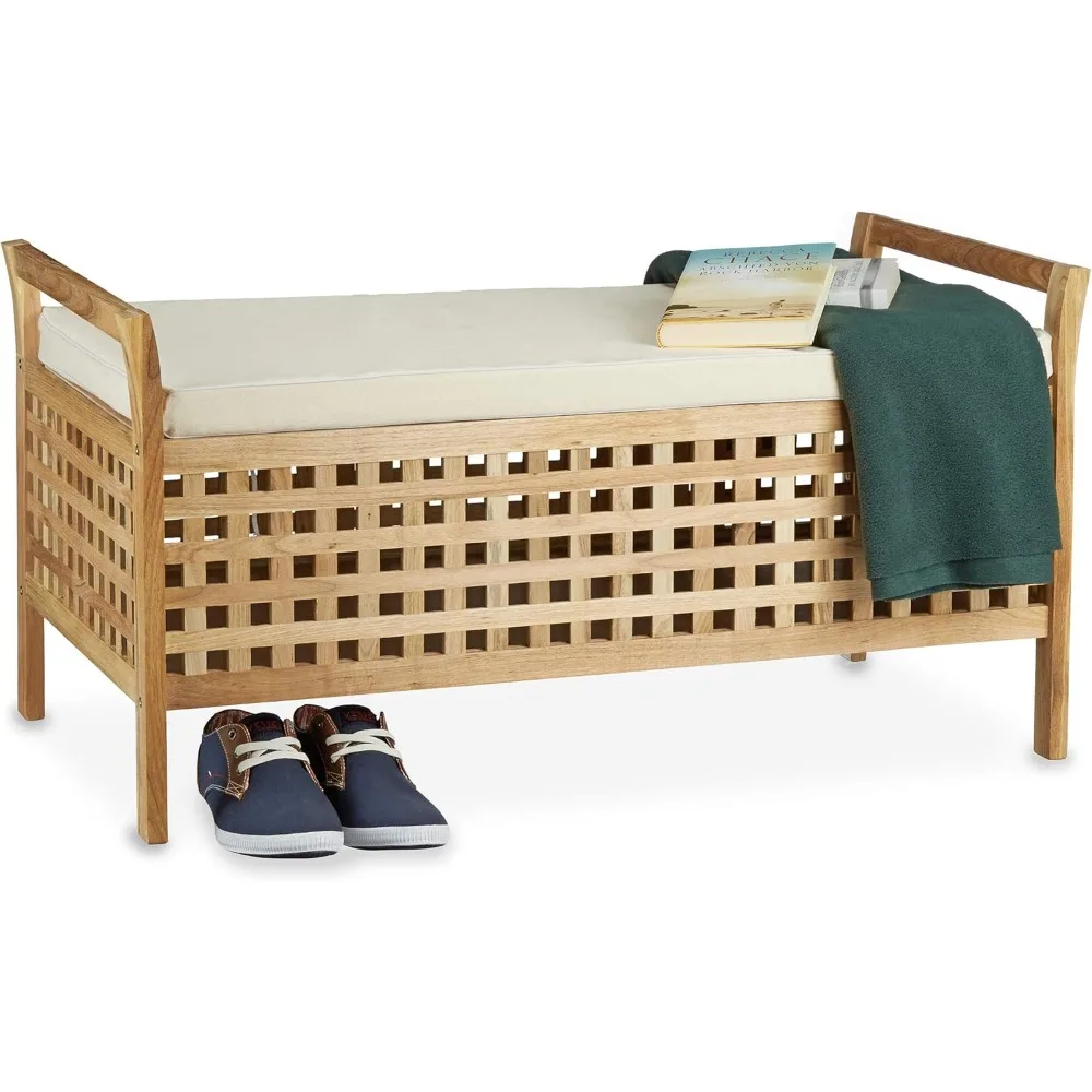 Banc de rangement en bois de noyer banquette assise coffre de rangement meuble à chaussure commode coussin HxlxP: 46,5 x 92,6 x