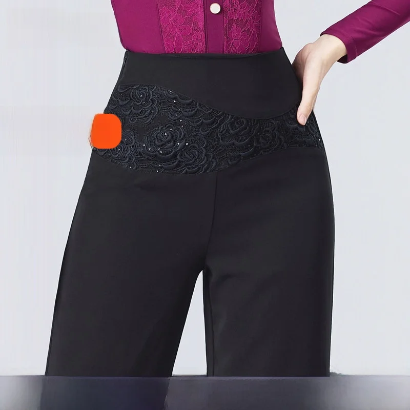 Pantalon droit taille haute pour danse latine, nouveau modèle amincissant en dentelle, pour danse sociale, automne-hiver, élégant et tendance