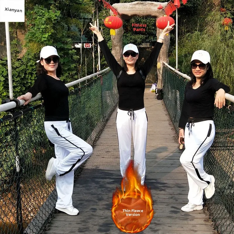 Jingyan femmes pantalons de danse de sport longs Fce doublé jambe droite pantalon de danse carré automne 2020 nouveauté