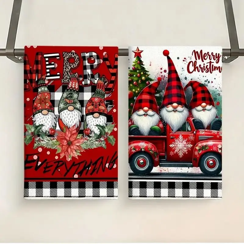 Différentes serviettes de Noël, essuie-mains et tissus décorés de motifs roses et argentés, créant une atmosphère festive, ae