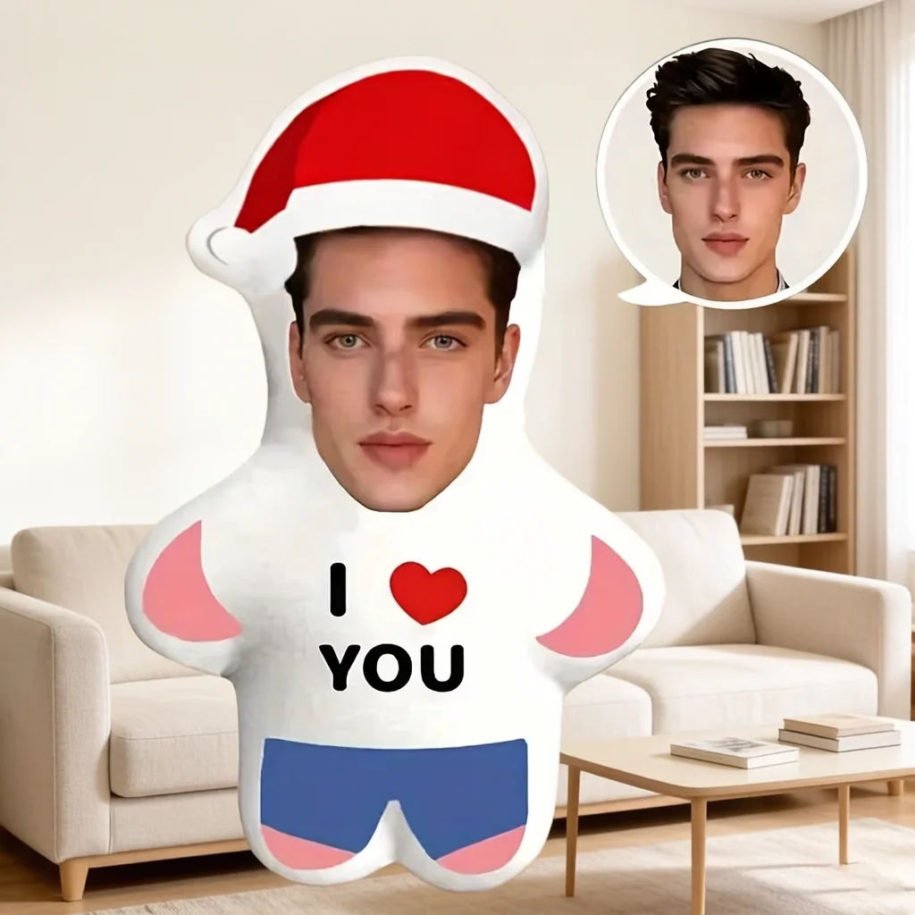 Nouveautés de Noël : Mini poupée en peluche personnalisée « Je t'aime », coussin avec photo personnalisée, cadeau idéal pour les couples, polyester doux