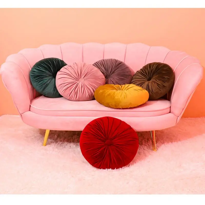 Coussin décoratif plissé artisanal en velours rond en forme de citrouille pour salon, chaise, canapé