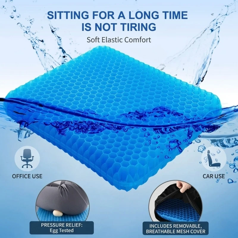 Coussin en gel double épaisseur violet, respirant et anti-pression, idéal pour les sièges de voiture et de bureau, parfait pour l'été