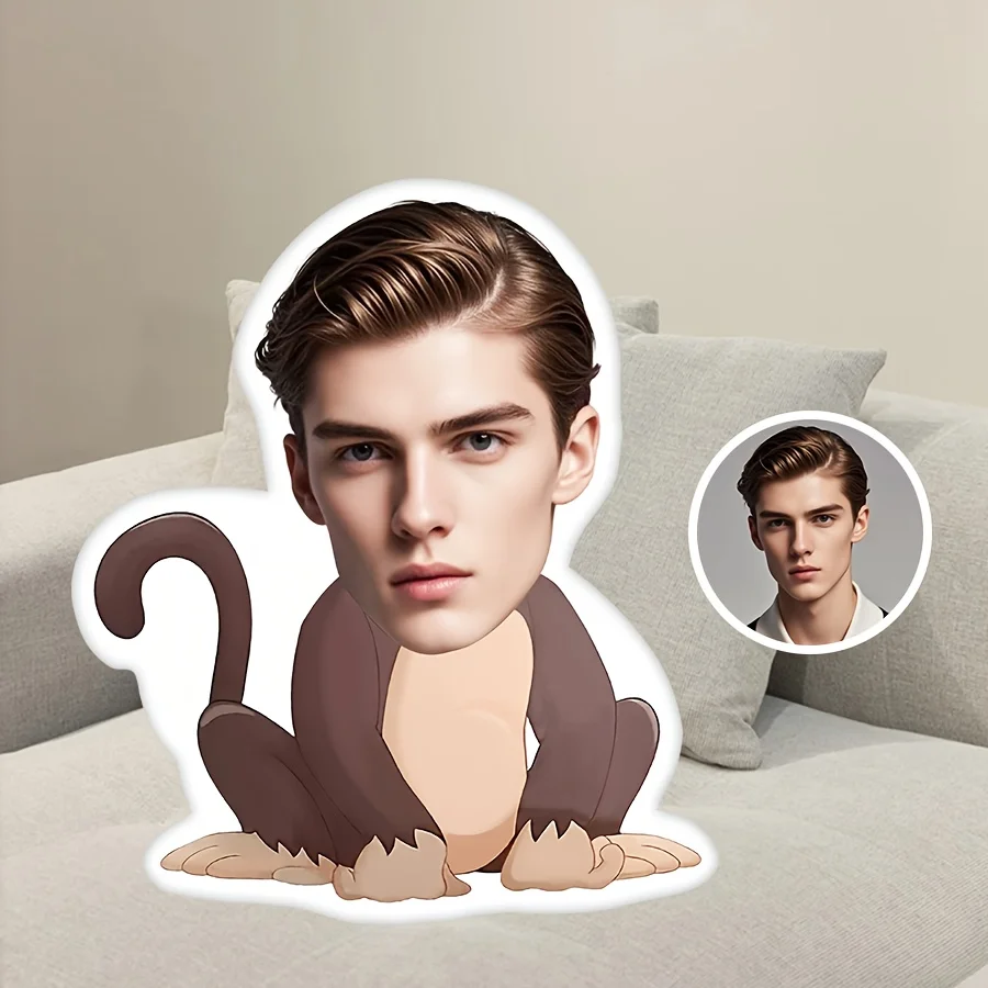 Coussin amusant personnalisable en forme de singe, style décontracté, lavable en machine, motif imprimé, fermeture éclair, idéal pour la décoration de canapé