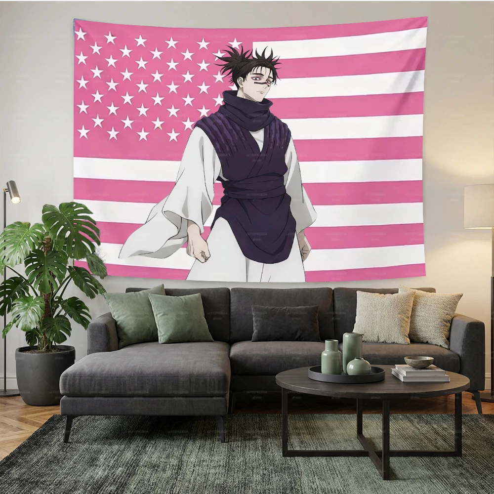 Tapisserie Jujutsu Kaisen Choso drapeau américain rose - Décoration murale anime pour chambre, salon et dortoir, cadeau pour fans de JJK