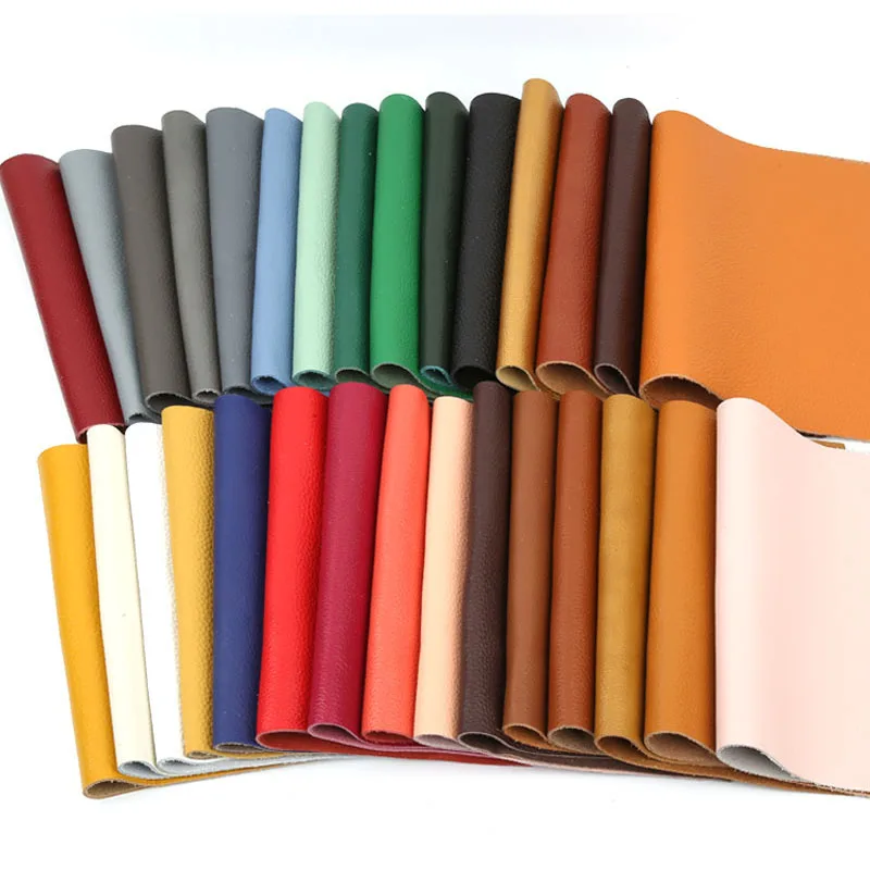 Couche supérieure en cuir de vache gris clair, tête de lit de canapé, siège de voiture, peau de vache souple à motifs litchi, tissu en cuir fait à la main de 1.5mm, bricolage