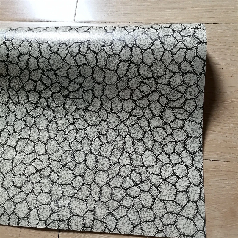Cuir de vachette gaufré effet autruche gris et blanc de 1 mm. Cuir véritable de première qualité pour sacs faits main DIY. Feuille complète disponible.