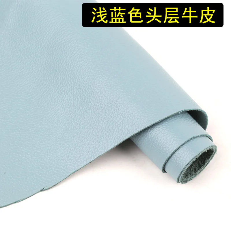 Matériau en cuir de vache de première couche de 1.5mm d'épaisseur, coussin de siège de canapé à motif litchi bleu clair et tapis de table, tissu en cuir