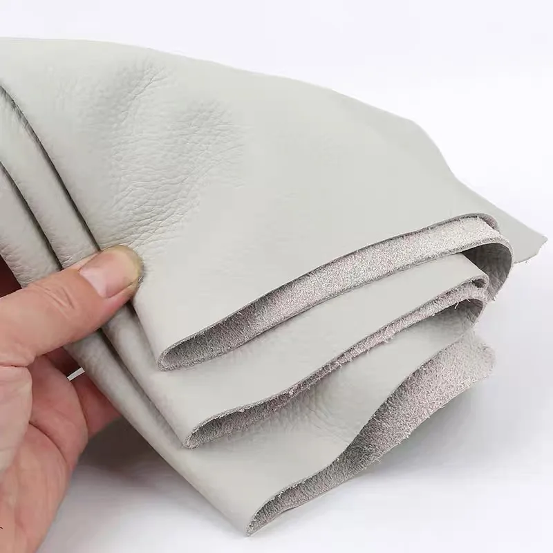 Couche supérieure en cuir de vache gris clair, tête de lit de canapé, siège de voiture, peau de vache souple à motifs litchi, tissu en cuir fait à la main de 1.5mm, bricolage