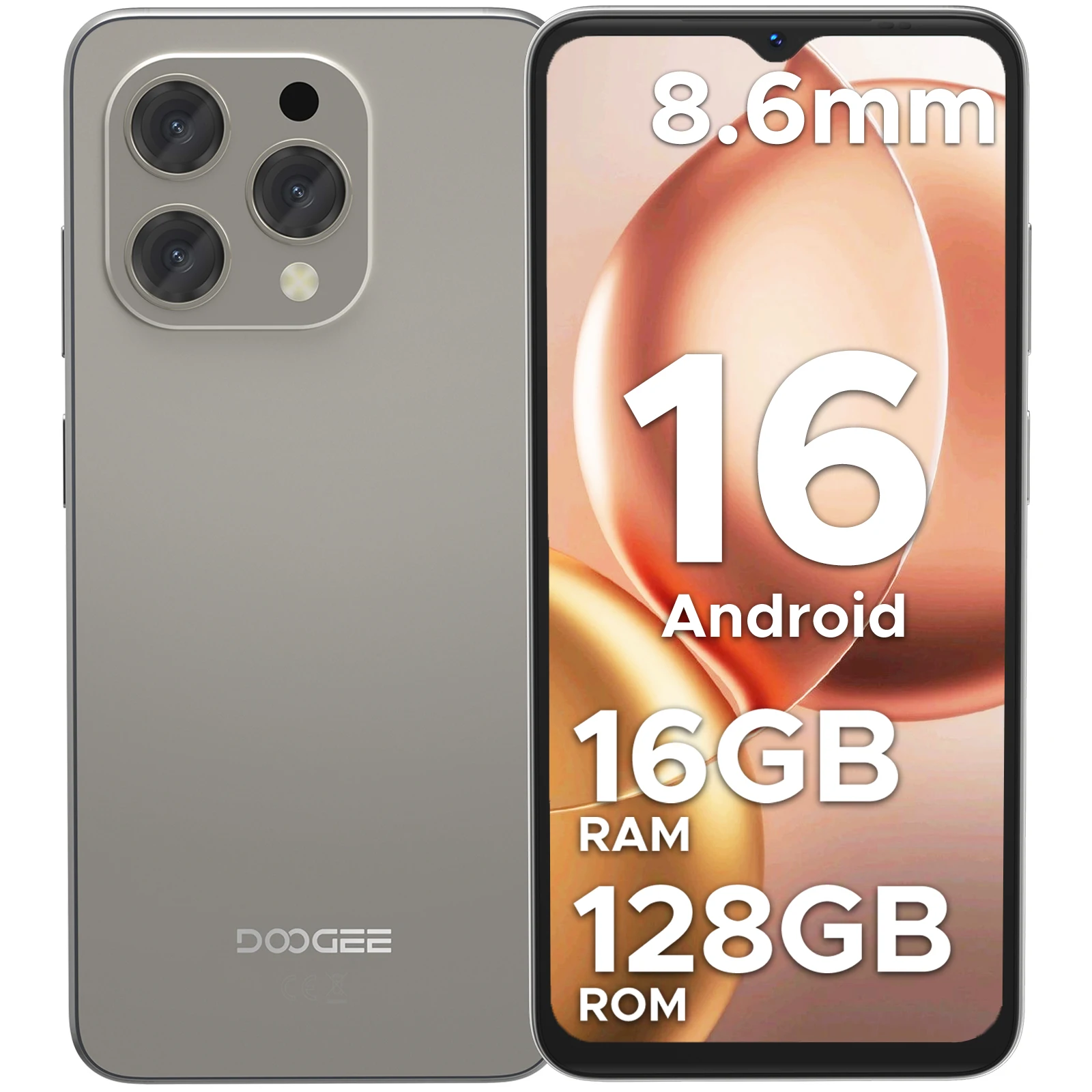 Smartphone Android DOOGEE N55 16 Go + 128 Go/2 To et téléphones mobiles ultra-minces de 8,6 mm, écran HD+ de 6,56 pouces 90 Hz, batterie de 5160 mAh, téléphone Android avec processeur T7200