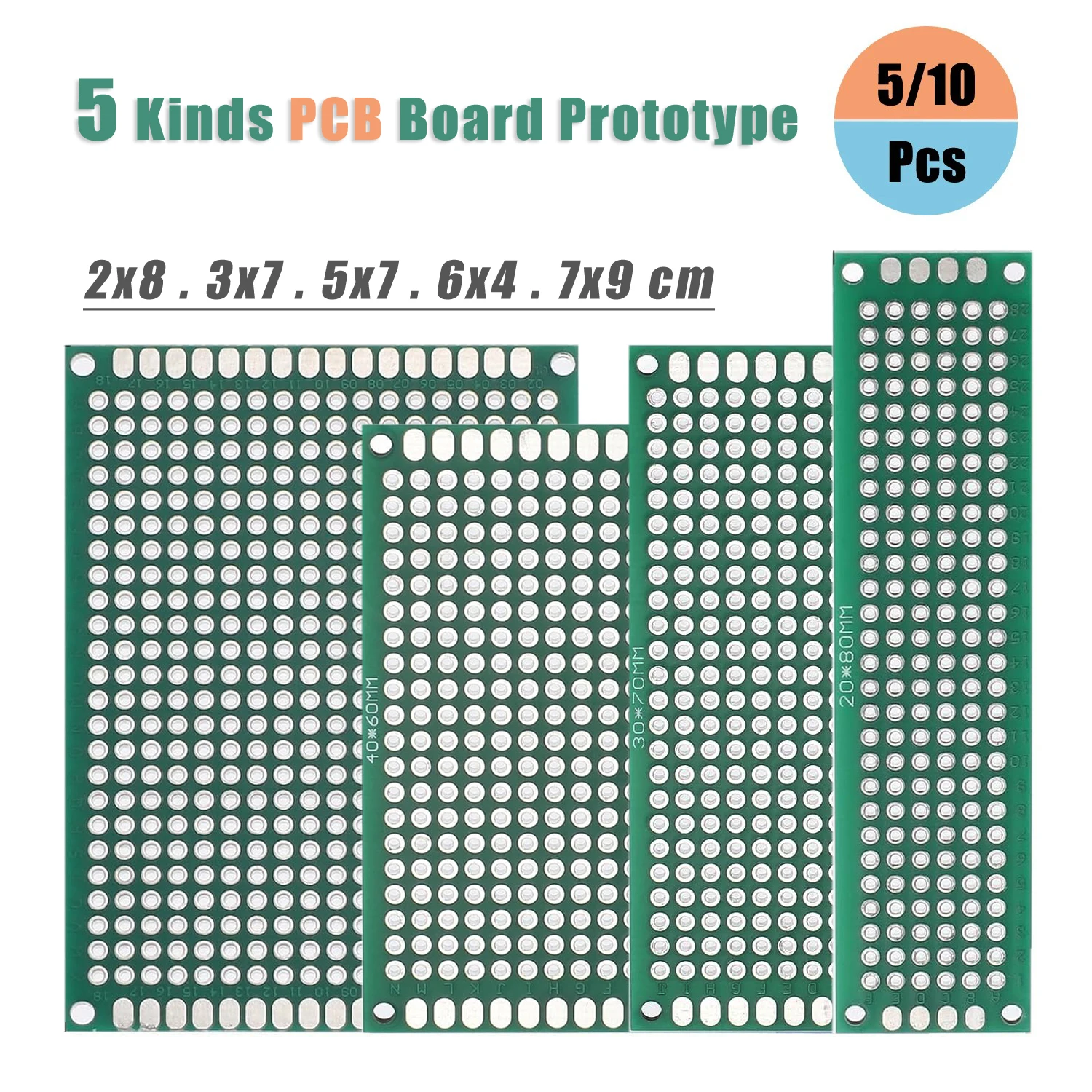 Carte PCB Prototype carte verte 2x 8/3x 7/4x 6/5x 7/7x9cm cartes de Circuit imprimé Double face pour projet de soudure bricolage 5/10 pièces