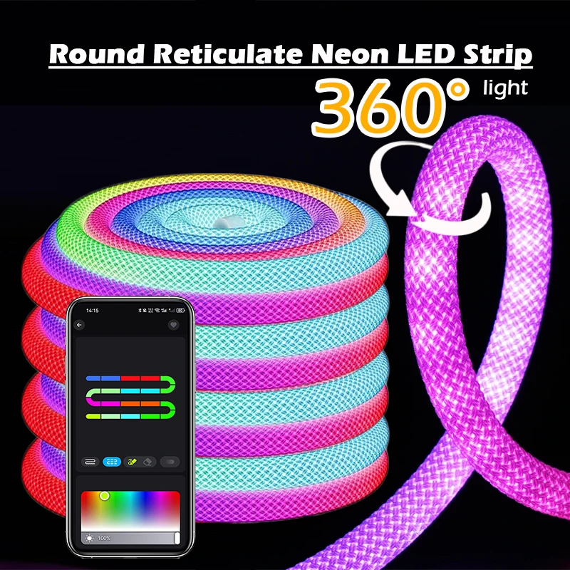 Bande LED néon réticulée à 360 degrés avec télécommande, lumière de corde flexible en nylon RGBIC, lumière de rêve colorée pour chambre à coucher, salon