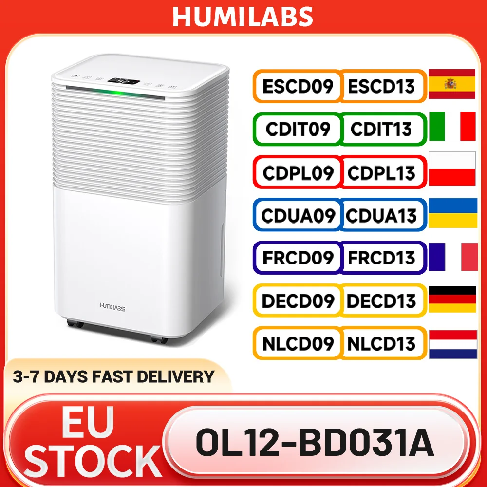Déshumidificateur portable HUMILABS OL12-BD031A, capacité de déshumidification de 12 L, 3 modes, minuterie 24 heures, drainage automatique/manuel, faible niveau sonore