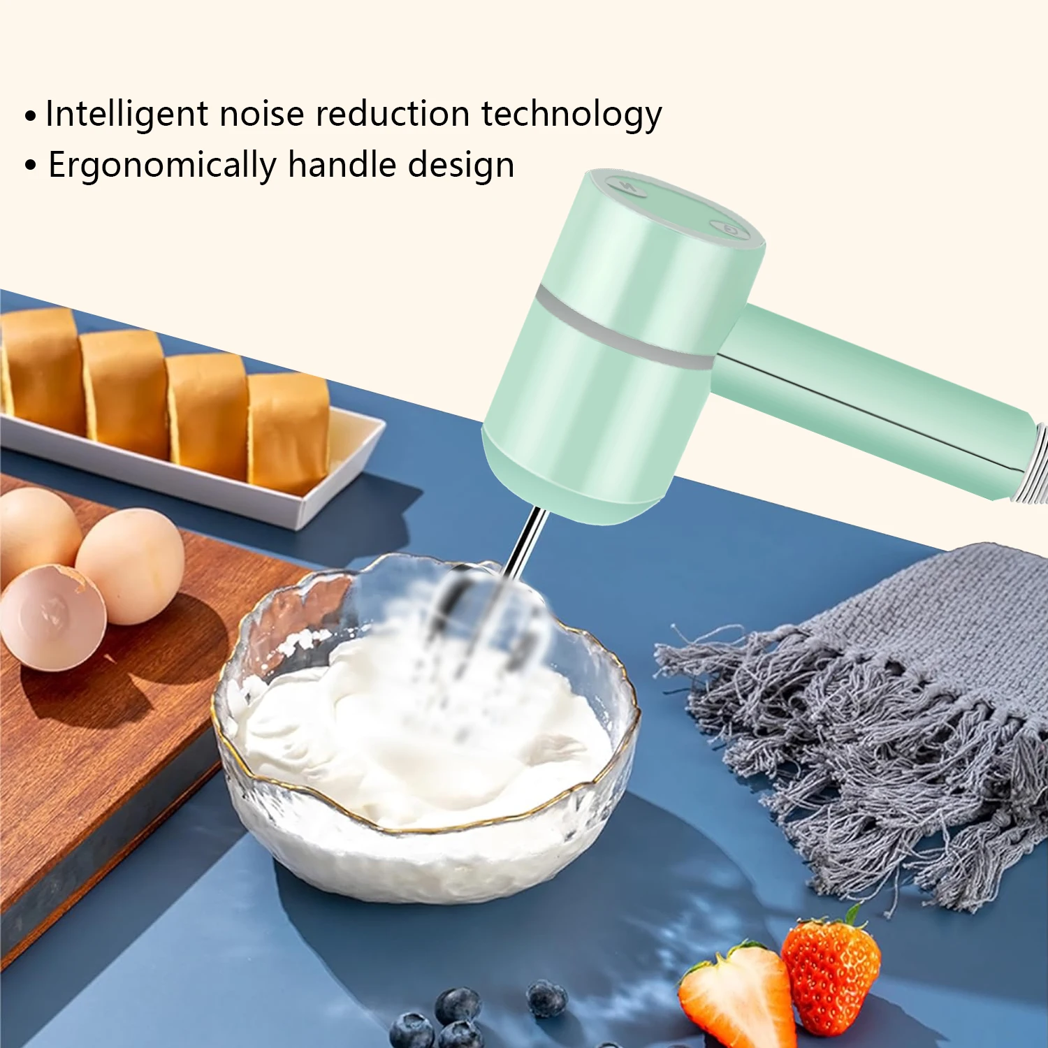Mélangeur sans fil, batteur à œufs à 3 vitesses, mélangeur alimentaire portable pour la cuisson de pâte, de gâteaux et de crème, outil de cuisine durable 1 pièce