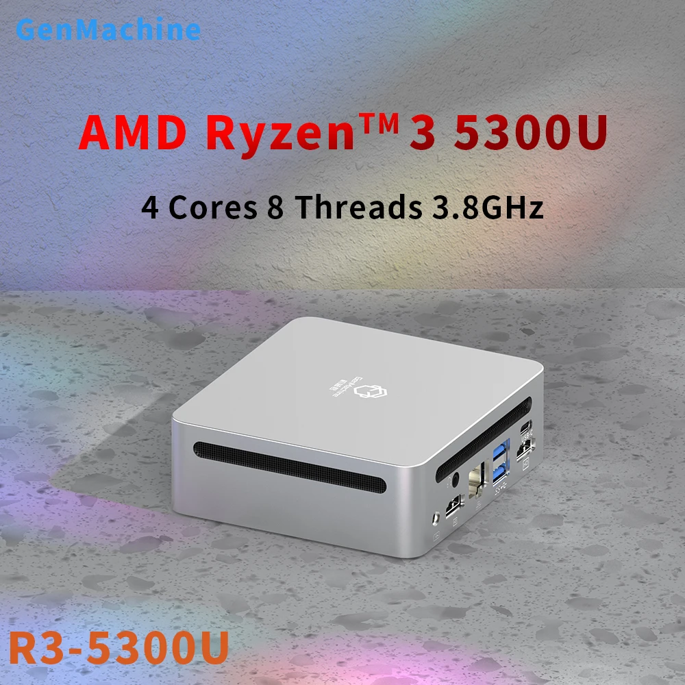 GenMachine Mini PC AMD Ryzen3 5300U double HDMI LAN WIFI6 DDR4 NVMe ordinateur de jeu de poche bureau NUC jusqu'à 1500 MHz