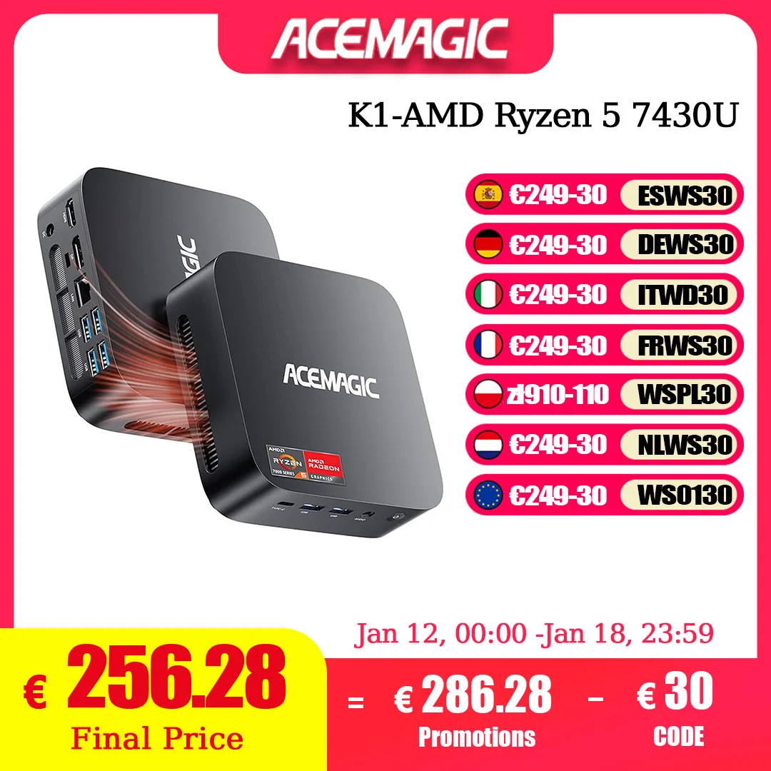 ACEMAGIC K1 MINI PC AMD Ryzen 5 7430U 16GB RAM 512GB SSD Windows 11 Pro MINI ordinateur Wifi6 BT5.2 4K Triple affichage