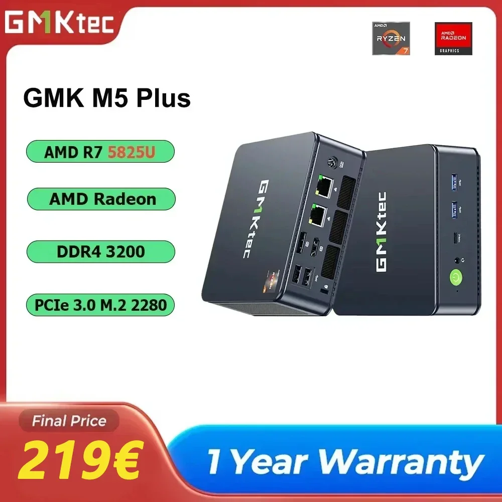 GMKtec M5 Plus Mini PC Ryzen 7 5825U 8G/16G 16/32GB DDR4 512GB/1TB NVMe SSD Windows 11 Pro WiFi6E double 2.5G LAN 3x 4K USB-C