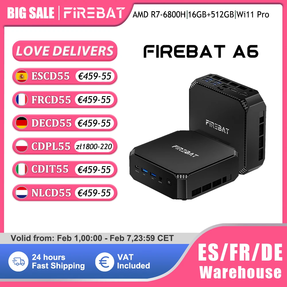 FIREBAT A6 Dernier MINI PC AMD Ryzen 7 6800H 7735HS 16 Go de RAM DDR5 512 Go SSD WIFI6 BT5.2 Ordinateur de bureau portable MINI-PC