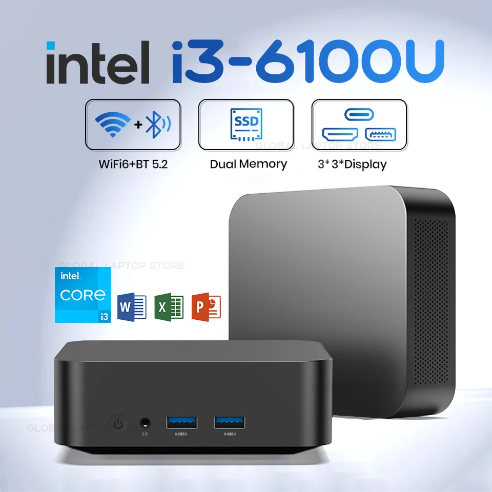 2026 nouveau Mini ordinateur Windows 11 Pro intel Core i3 6100U 16GB RAM 512GB SSD 4K HD type-c Mini PC ordinateur de bureau Wifi 6