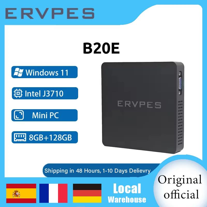 ERVPES Mini Pc B20E Windows 11 Pro 8GB RAM 128GB ROM J3710 Micro ordinateur de bureau double bande Wifi Mini Pc