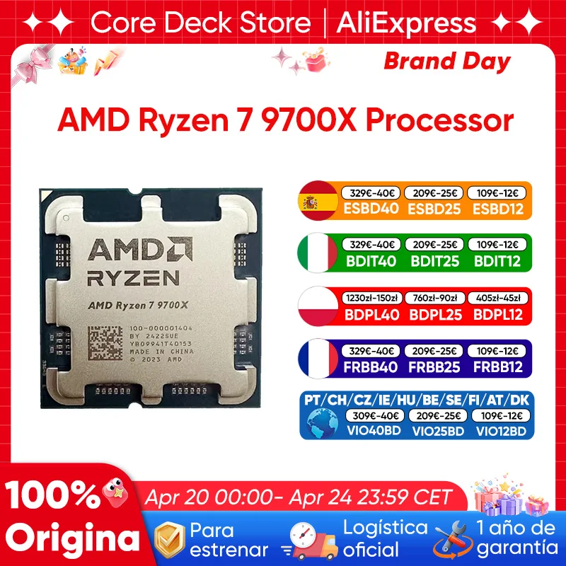 AMD Ryzen 7 9700X 8 Core 16 Thread Processor ryzen 7 9700x 3.8GHz Acceleration frequency Up to 5.5GHz 32MB 4NM 65W TDP No Fan