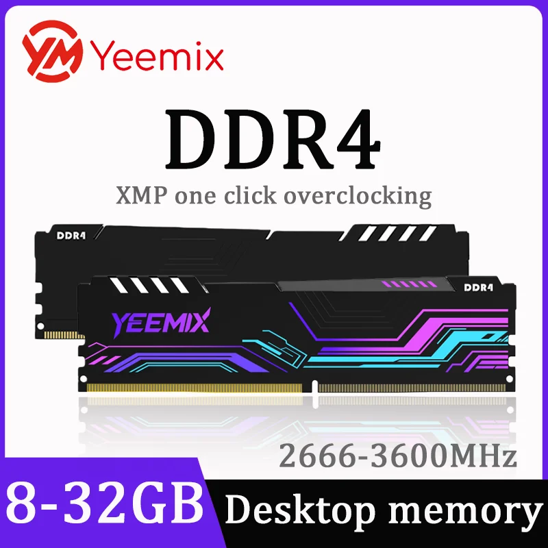 Yeemix DDR4 8GB 32GB 16GB 2666MHz 3200MHz 3600MHz mémoire de bureau Dimm dissipation thermique XMP overclocking haute Compatible RAM