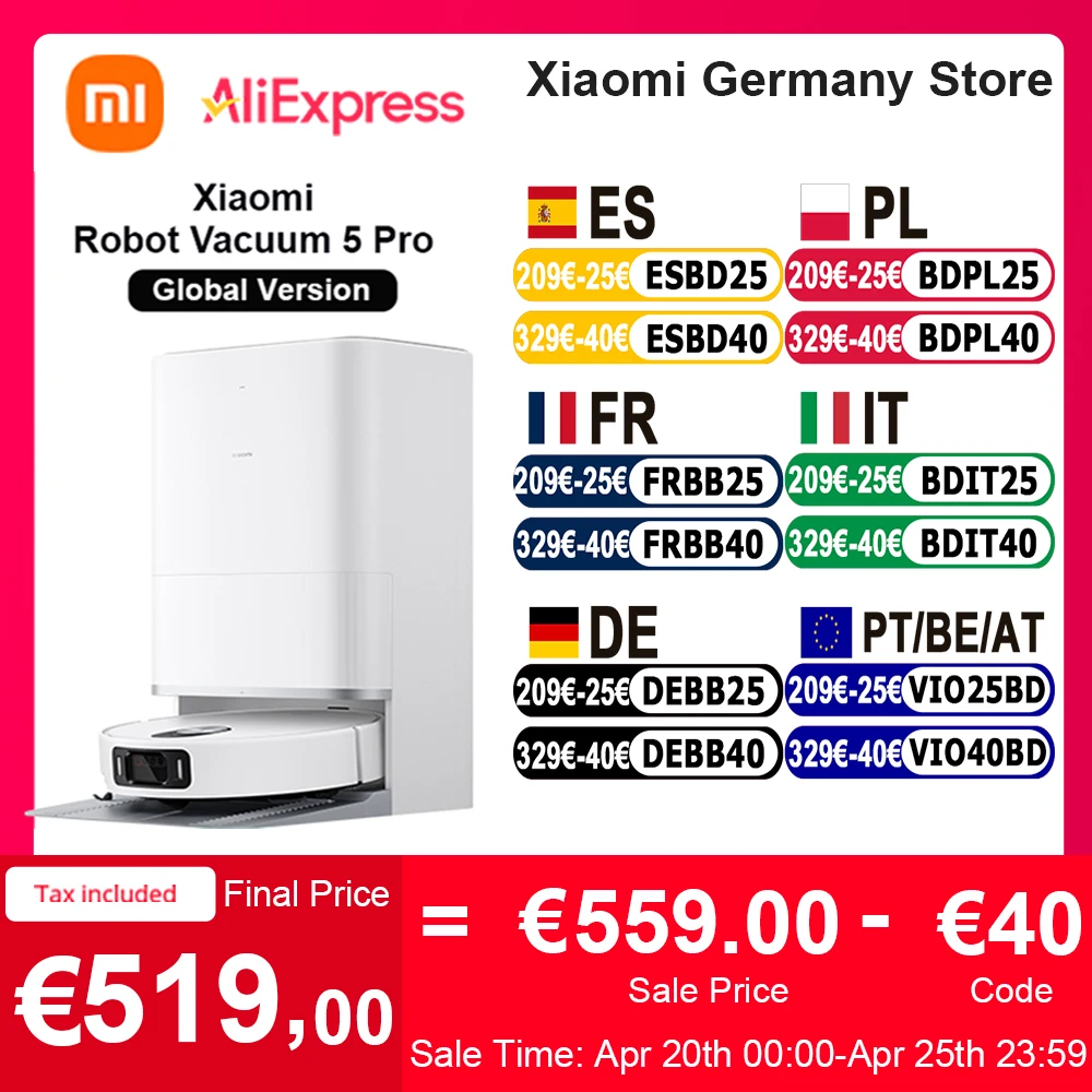 Version mondiale Xiaomi Robot Vacuum 5 Pro (X20 + mise à niveau) appels unidirectionnels vidéo HD Identification à trois caméras AI 200 types de reconnaissance d'obstacles Raise et abaisser LDS et nettoyer en profondeur dans les espaces bas 20 000 Pa plus fort contrôle vocal/application intelligent par application