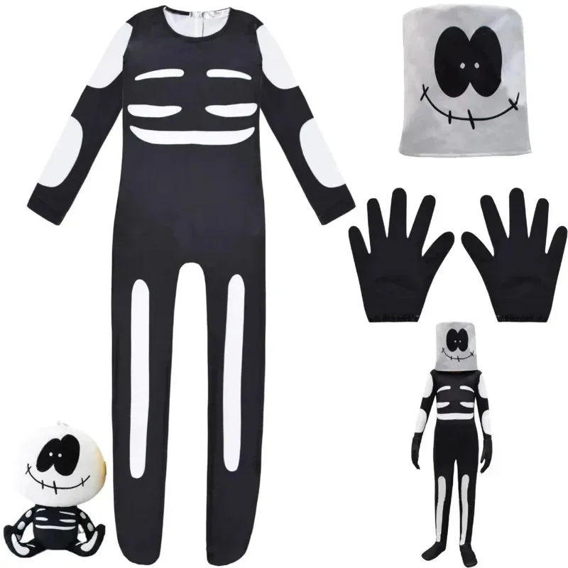 Costume de cosplay Skid Pump de Friday Night Funkin Spooky Month 2026 pour enfants garçons, combinaison de fête d'Halloween, masque squelette crâne Cl Cosshe