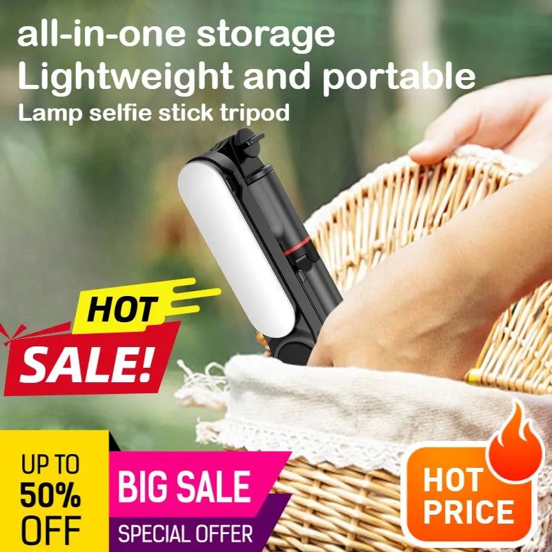 FANGTUOSI Portable Bluetooth Selfie bâton rétractable multifonctionnel téléphone HoldeTripod avec lumière Selfie télécommande sans fil