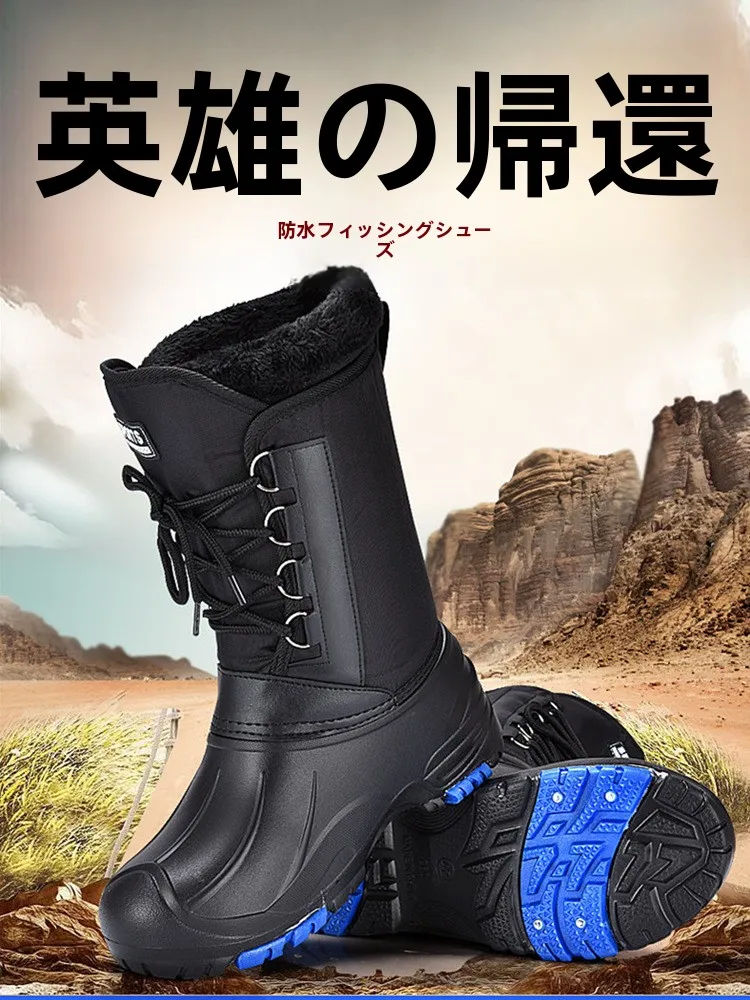 Thiened Bottes de fiing imperméables Bottes de neige chaudes d'hiver pour hommes avec clou anti-dérapant Ice Fiing oes Ongles de neige double couche...