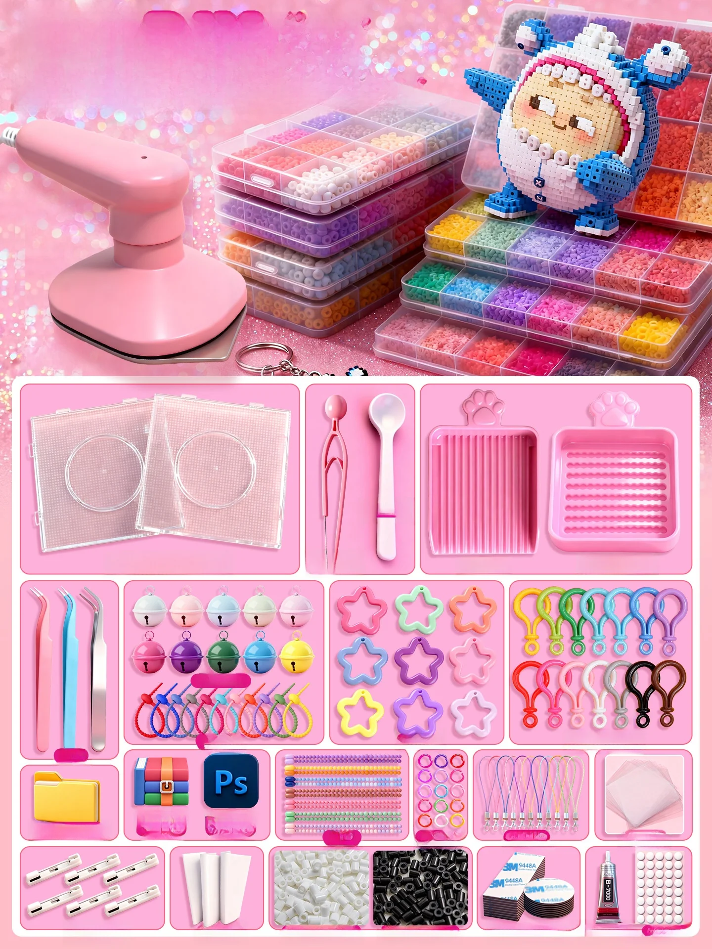 Kit d'art de haricots à faire soi-même, ensemble complet de haricots 3D Merging, fait à la main, stylo à outils, repassage supplémentaire Pa Crt, construction Blos