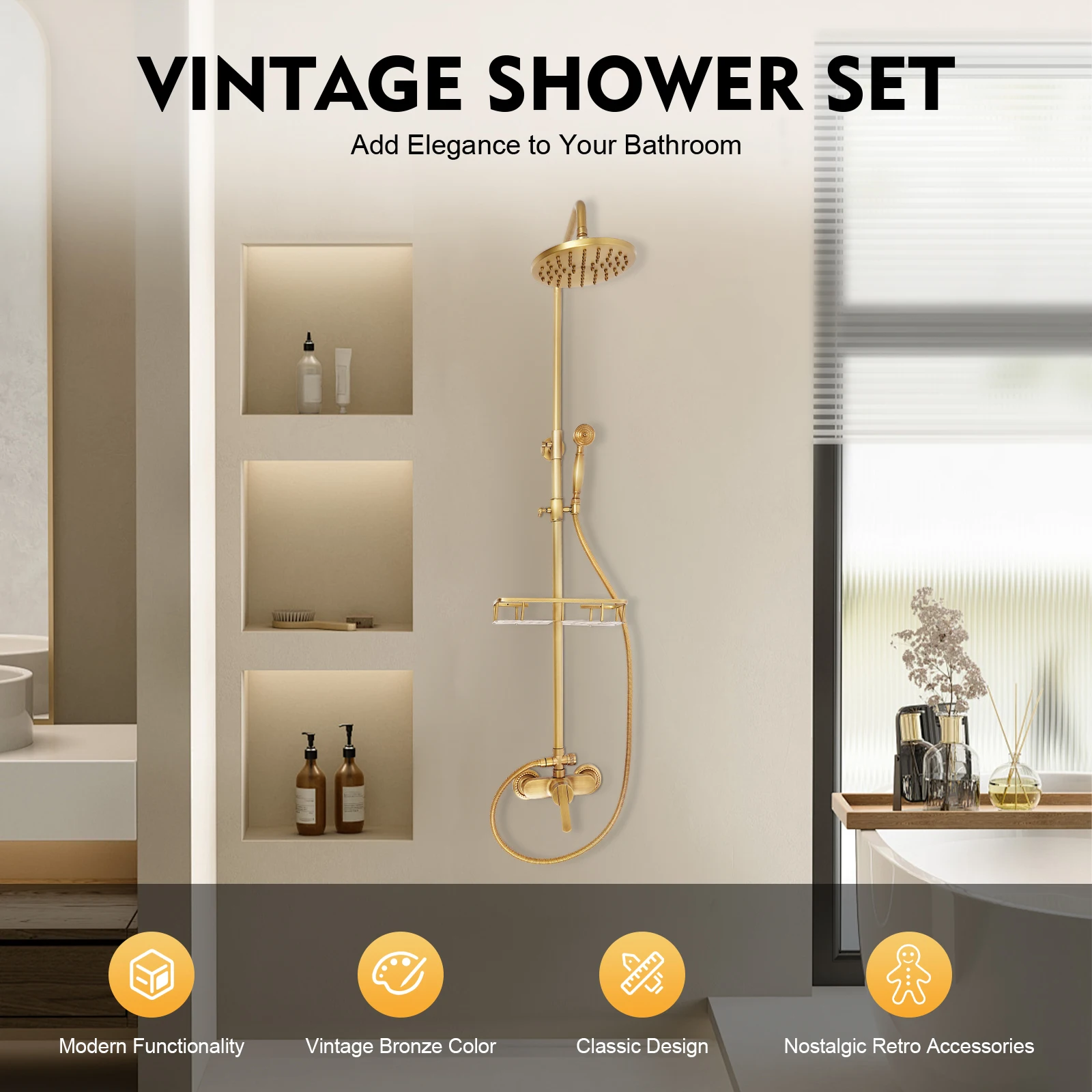Ensemble de robinets de salle de bain et douche en laiton Antique, 8 pouces, support mural à double poignée, étagère de douche à main, systèmes chauds et froids, mélangeur système de douche de pluie