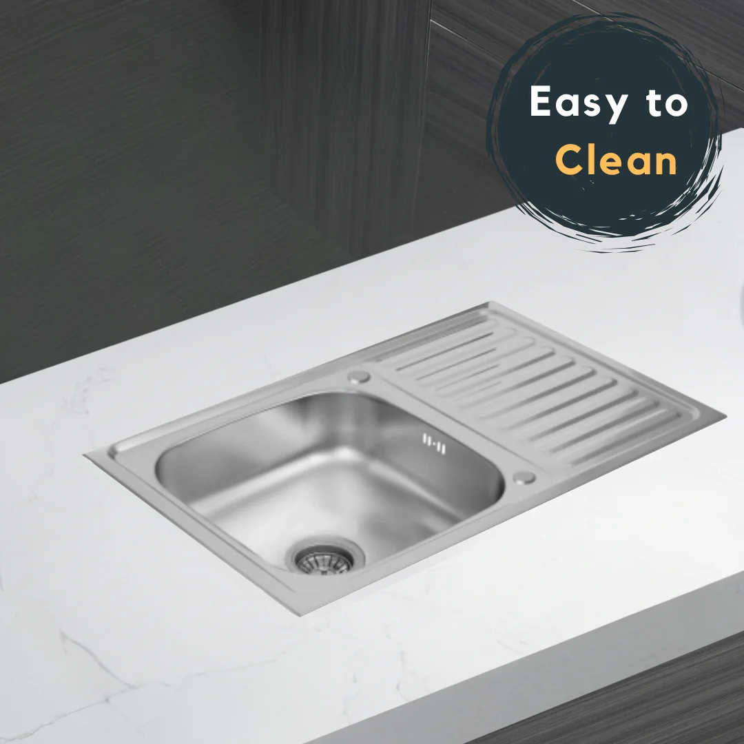 Évier de cuisine en acier inoxydable 80x60cm avec égouttoir, bol simple, trou de robinet, montage supérieur réversible