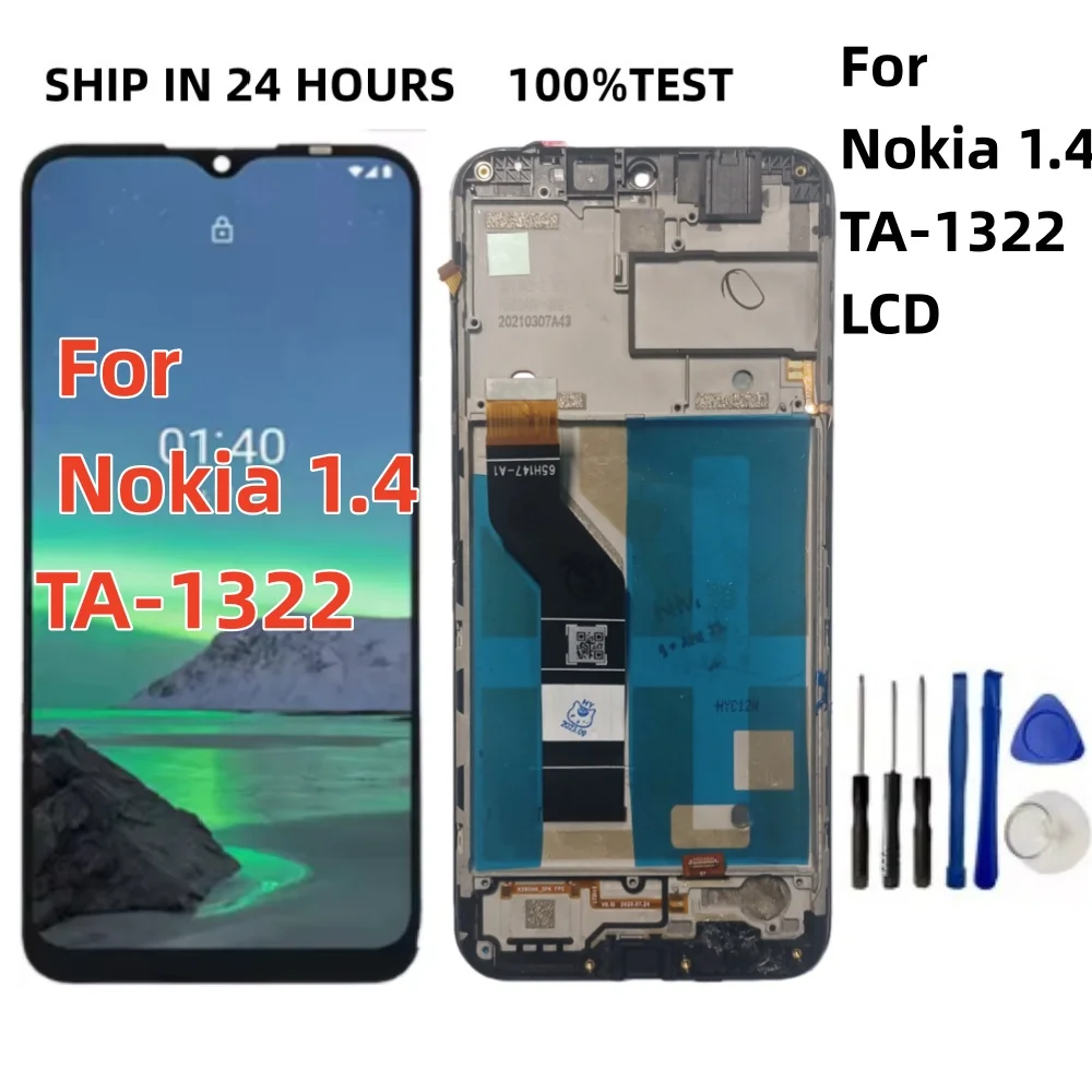 6.52 pouces LCD pour Nokia 1.4 TA-1322 LCD écran tactile numériseur assemblée panneau de téléphone pièces pour Nokia 1.4 LCD avec cadre