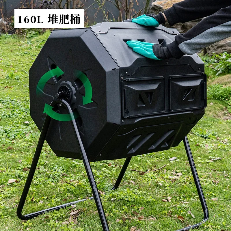 Poubelle à Compost aérobique à tambour rotatif, boîte de Fermentation de feuilles de déchets de cuisine, poubelle à Compost de grande capacité pour jardin domestique