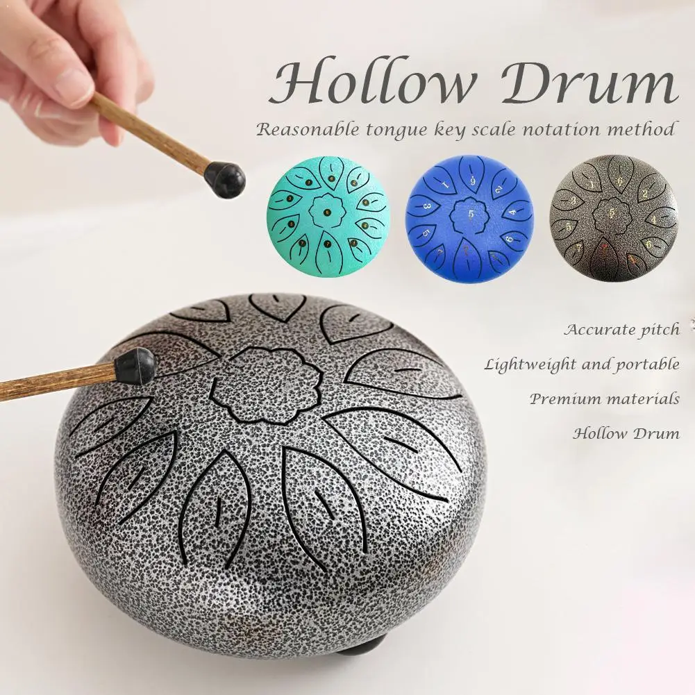 Ensemble cadeau de tambour à langue en acier de 6 pouces, tambour creux, Instrument de guérison sonore à 11 notes avec Kit de réglage | Outil de soulagement du yoga/meditation/anxiété