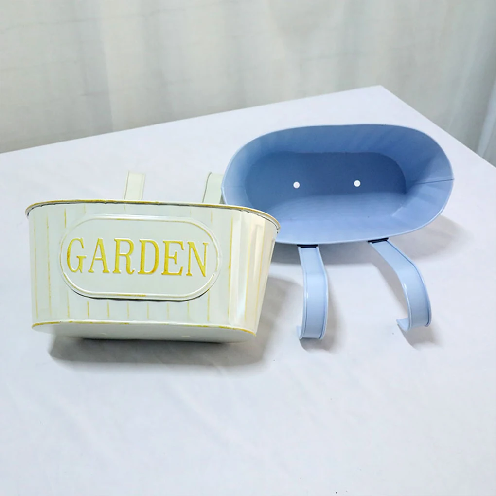 Jardinière suspendue en métal, 2 pièces, trous de drainage en fer galvanisé, adaptée au balcon ou à la clôture, blanc + bleu clair