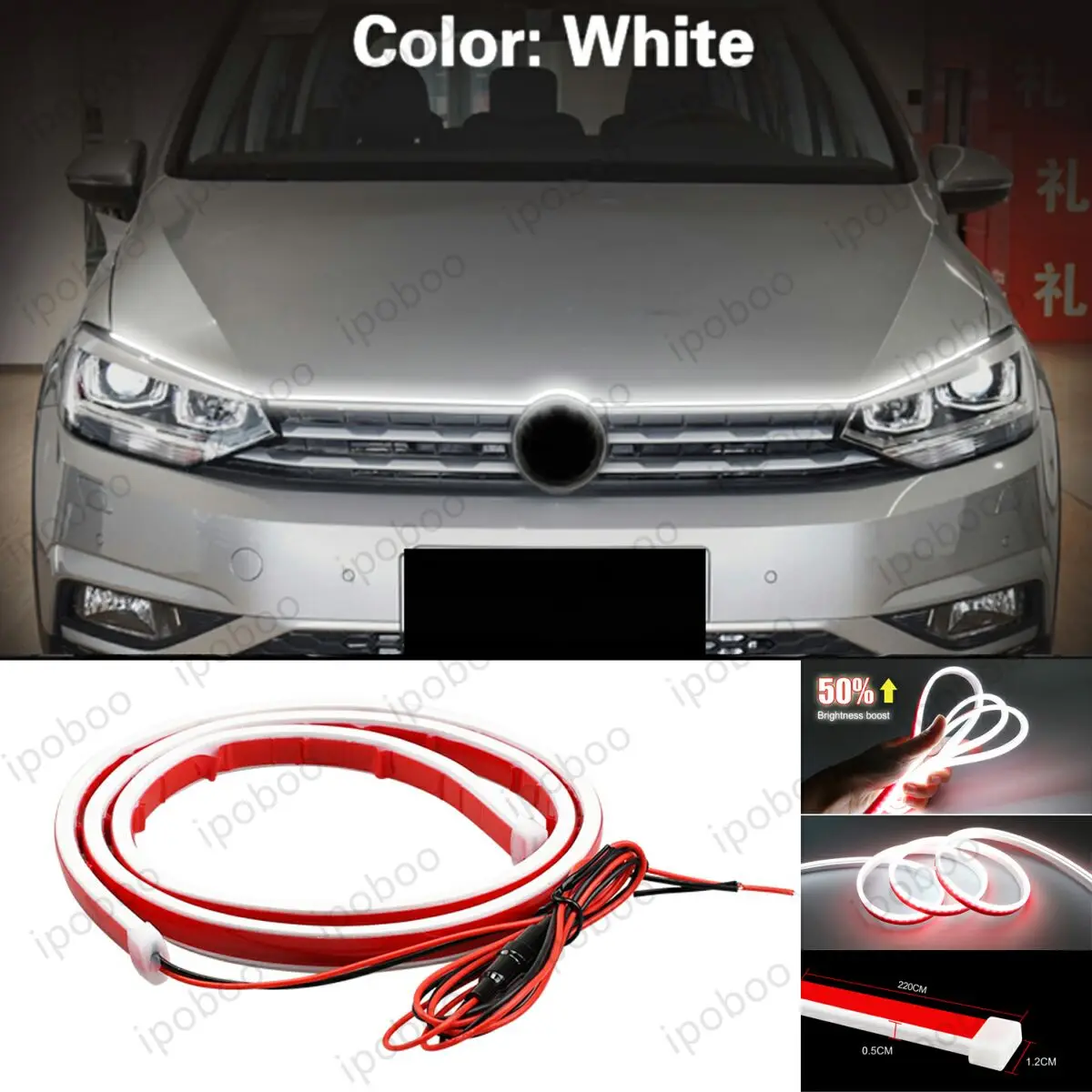 Bande lumineuse blanche pour capot de voiture 12V, lampe de décoration Led de démarrage, lampe de jour Flexible, bandes de phares automobiles, Assecorie de voiture