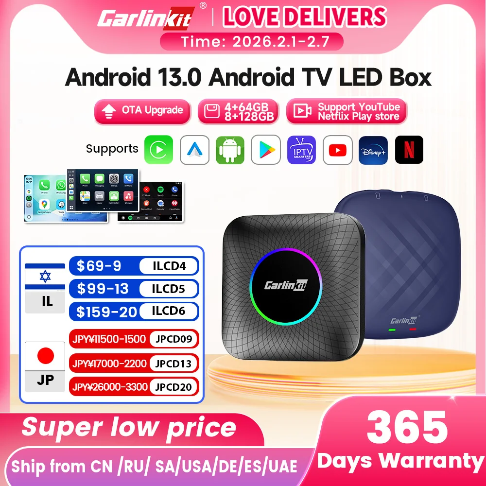 Carlinkit Ai Box Android 13 Led sans fil Android Auto & CarPlay Smart Tv Box QCM6225 prise en charge Youtube Netflix accessoires de voiture