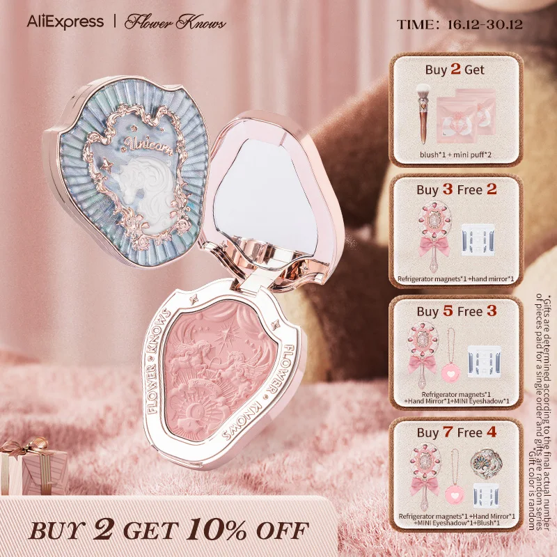 Fard à joues naturel en relief de licorne Flower knowl, maquillage 6 couleurs 5g