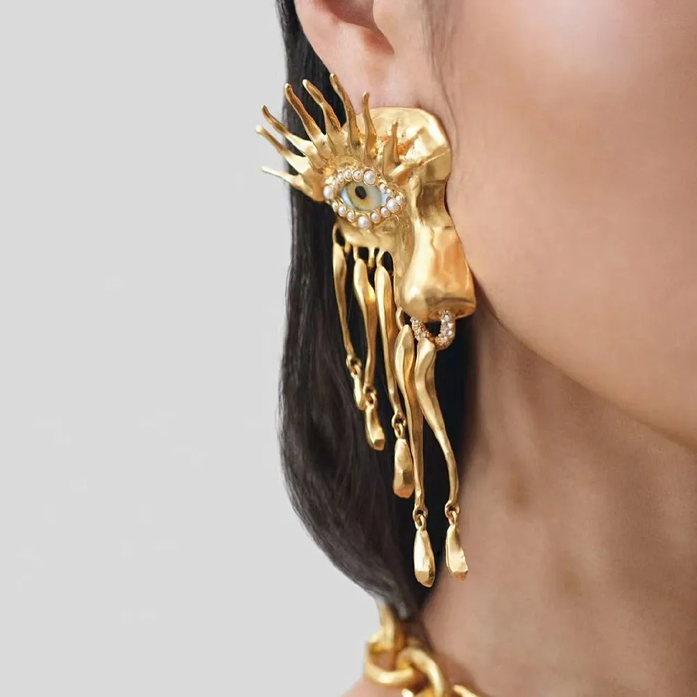 Boucles d'oreilles pendantes en métal plaqué or pour femmes, bijoux de haute qualité, accessoires exagérés pour dames, nouvelle collection