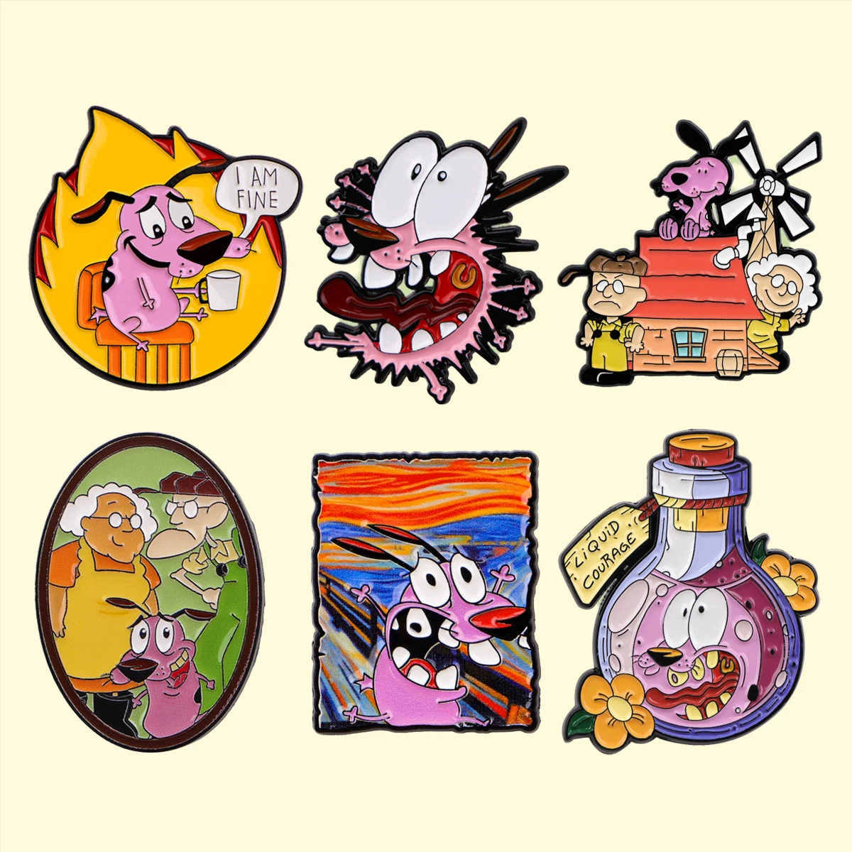 6 pièces/ensemble mignon rose héros chien émail broche figurines de dessin animé épinglettes Badges sur sac à dos broches pour femmes bijoux cadeau pour amis